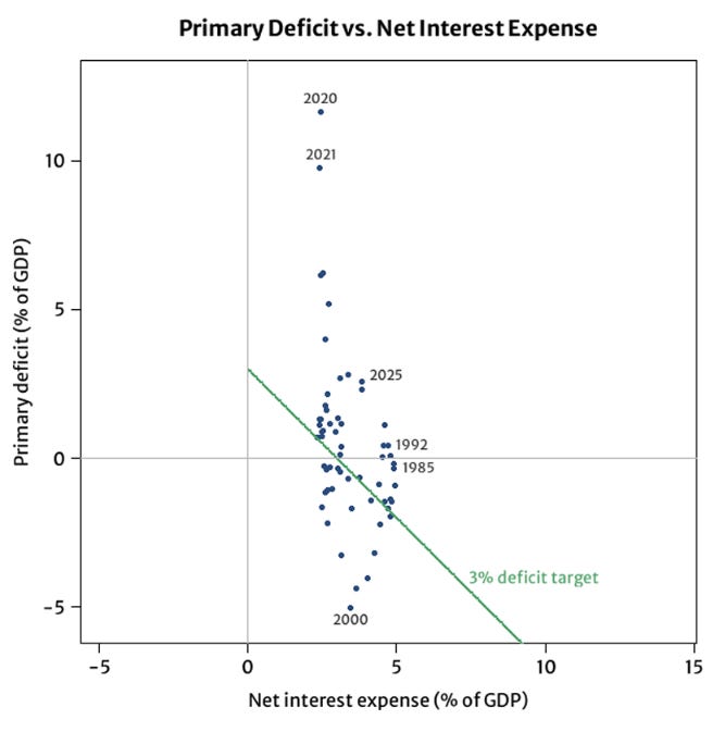 Figure 1. Primary deficit vs. net interest expense, 3% deficit constrain